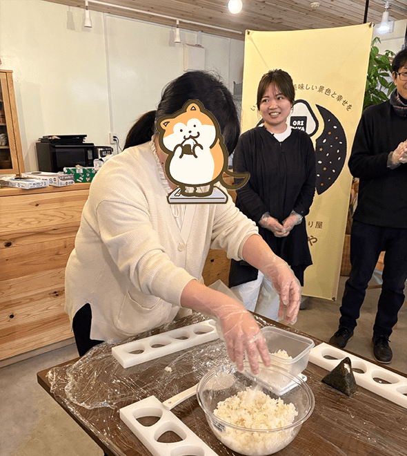 にぎにぎ会では、実際に織はやで使われているおにぎり型が配布され、さっそく実践してみました。